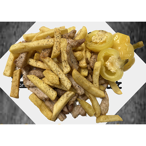 2 szelet cigánypecsenye sertéstarjából vele sült szalonnával, 2db sajtta-sonkával töltött sertéskaraj, 2 szelet rántott csirkemell, 2db rántott trappista sajt, rizi-bizi, hasábburgonya, 2,5dl tartármártás